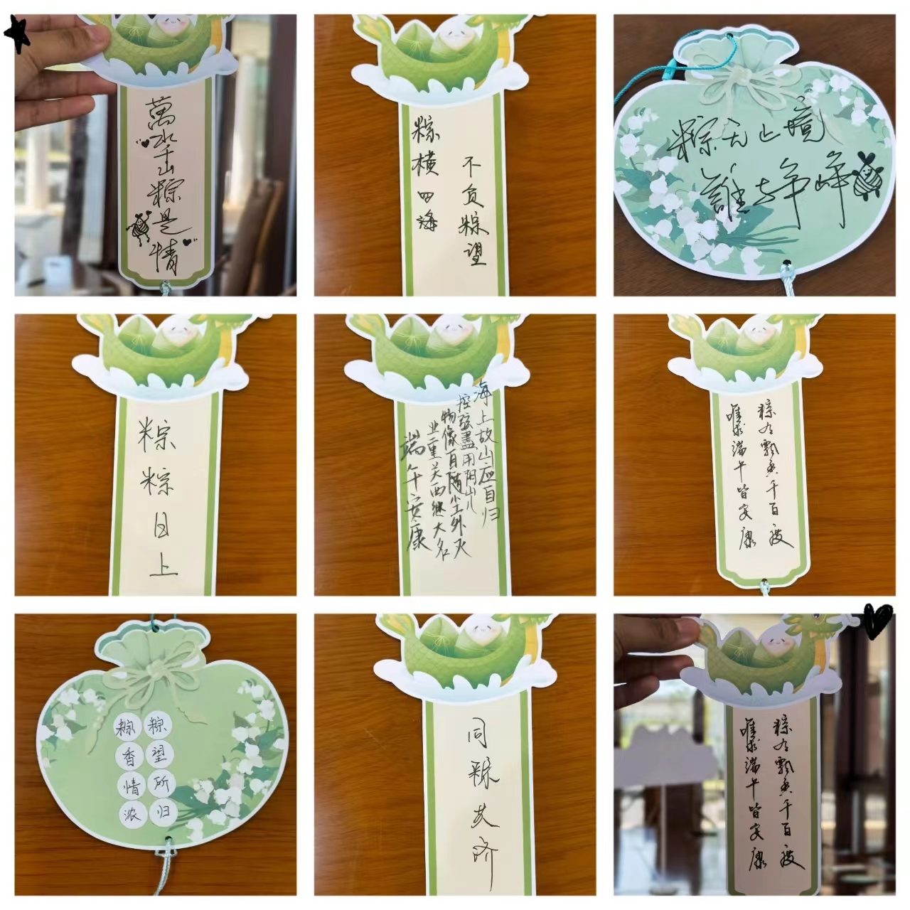 筆架沾窗雨,書簽映隙曛。以“粽”字書寫端午印象,大大小小的書簽匯成書香海,增添端午書香氛圍~